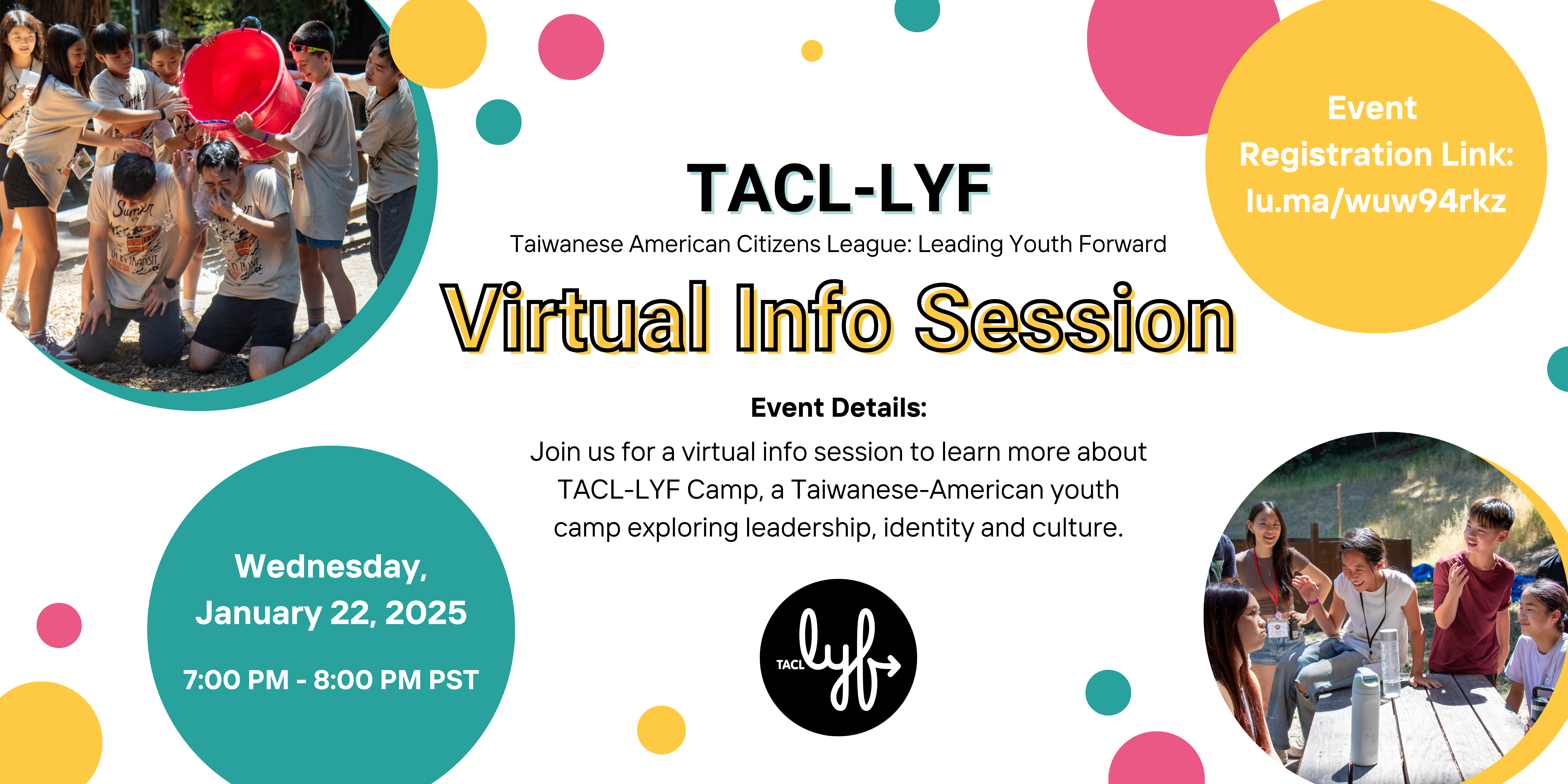 Join us virtually on February 4th, 2026 to learn about TACL-LYF (Taiwanese American Citizens League: Leading Youth Forward) and our LYF Camp 2026. We are a Taiwanese American summer camp exploring leadership, identity, and culture. Our mission is to cultivate the Taiwanese American community into whole person leaders through an understanding of heritage, self, and the world.